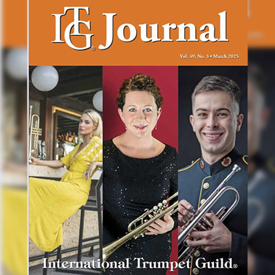 Trumpet player Nathan Little (MM ’21) appears on the March cover of the International Trumpet Guild Journal. He's a member of the United States Army Field Band Concert Band.